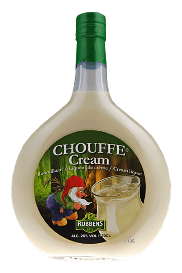 Chouffe Cream is a liqueur made from “Esprit d’Achouffe” – a spirit obtained through the distillation of McChouffe ale. Grain alcohol, 100% natural vanilla extracts plus a strong dash of McChouffe beer are the ingredients. Delicious poured over ice.