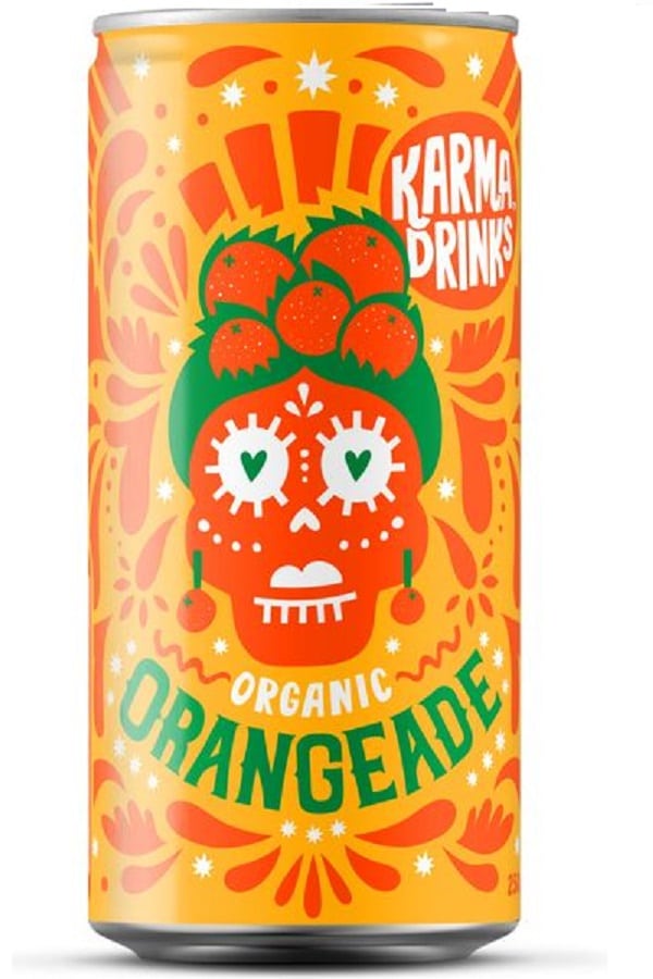Description: Karma Drinks creates organic and fairtrade soft drinks. Karma Orangeade is vegan and made with juicy, organic Valencia oranges grown in the San Potosi region of Mexico.